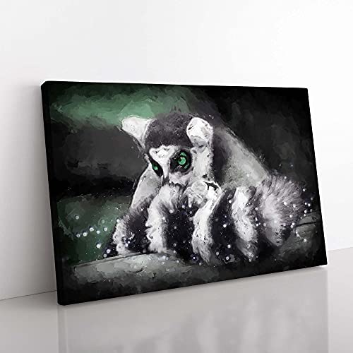 Big Box Art Ring-Tailed Lemur in Abstract Canvas Wall Art Print Ready to Hang Picture, 76 x 50 cm (30 x 20 Inch), Black, Grey