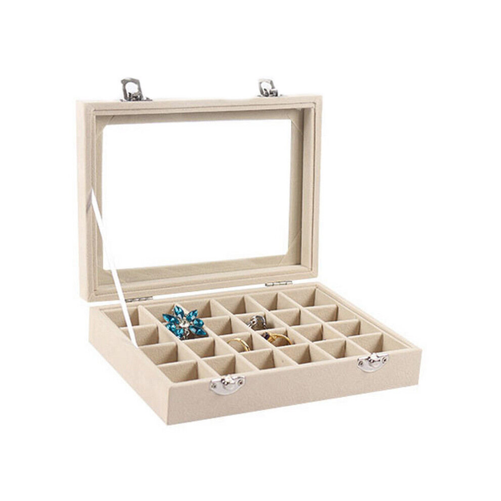 Velvet Glass Jewelry Display Box 20*15*4.5cm Jewelry Tray Holder Casket Storage Organizer Earrings Ring Box in Beige
