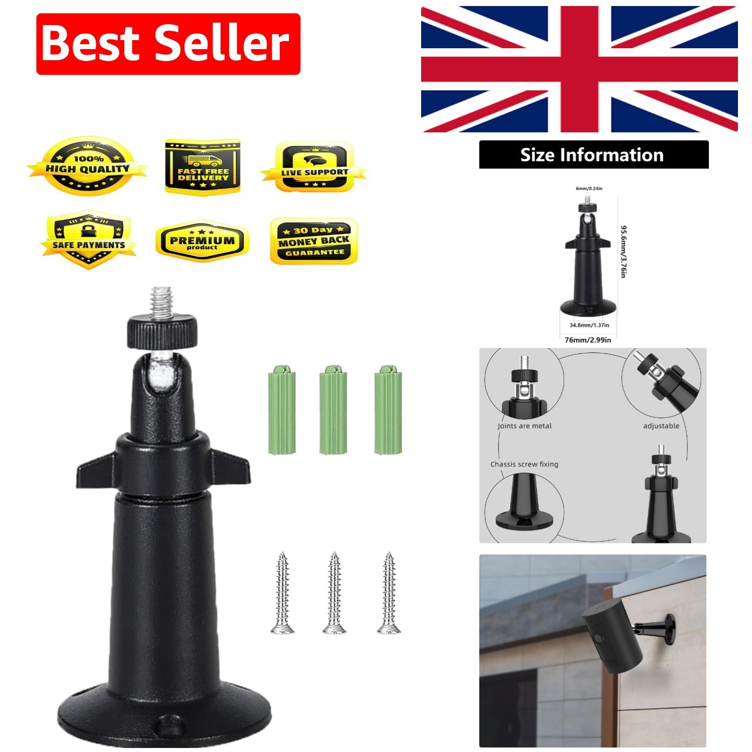 360° Adjustable Ring Camera Wall Mount - Secure Indoor & Outdoor Installation