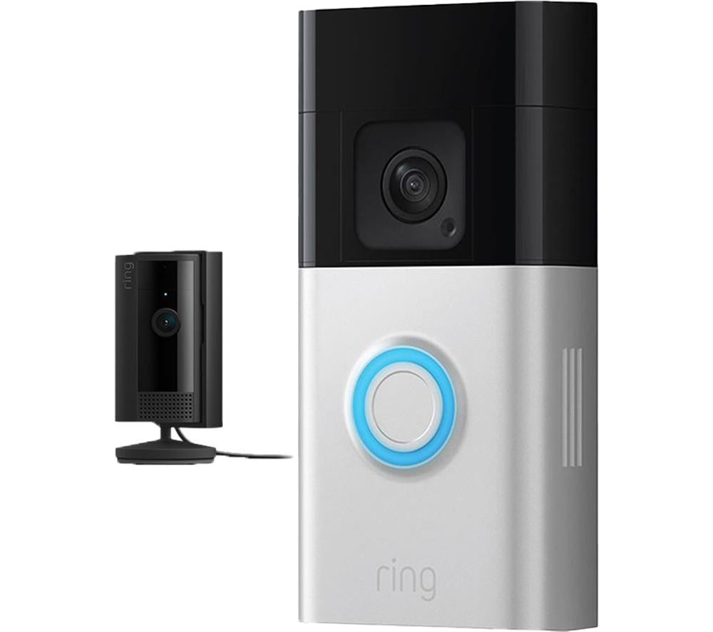 Ring Battery Video Doorbell Plus & Indoor Camera (2nd Gen, White) Full HD 1080p WiFi Security Camera Bundle, Silver/Grey