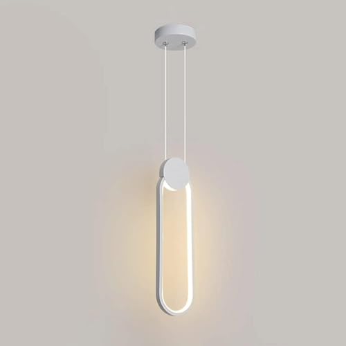SLFFLS Long Ring Night Pendant Lights Metal Lamps with Silicone Shade Suspension Bedside Lamp Droplights Hanging lamp(White,White light)