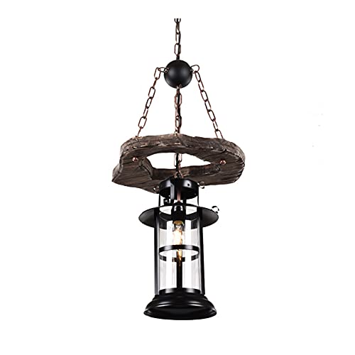 HLTYGWX Country Nostalgic Style Chandelier, Retro American Black Pendant Light Classic Industrial Suspension Lamp Single Head Solid Wood Ring Hanging Lights Metal Wrought Iron Lampshade Lu