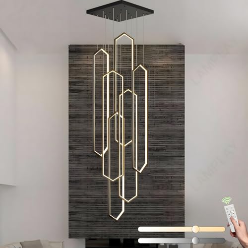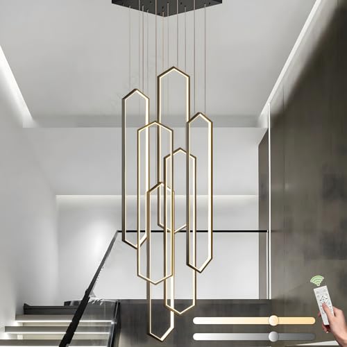 HLTYGWX Adjustable Chandelier - 6 LED Gold Diamond Ring Lights with Remote Control, Dimmable 3000K-6000K for Living Room, Hallway & Stairs Elegant Villa Lighting