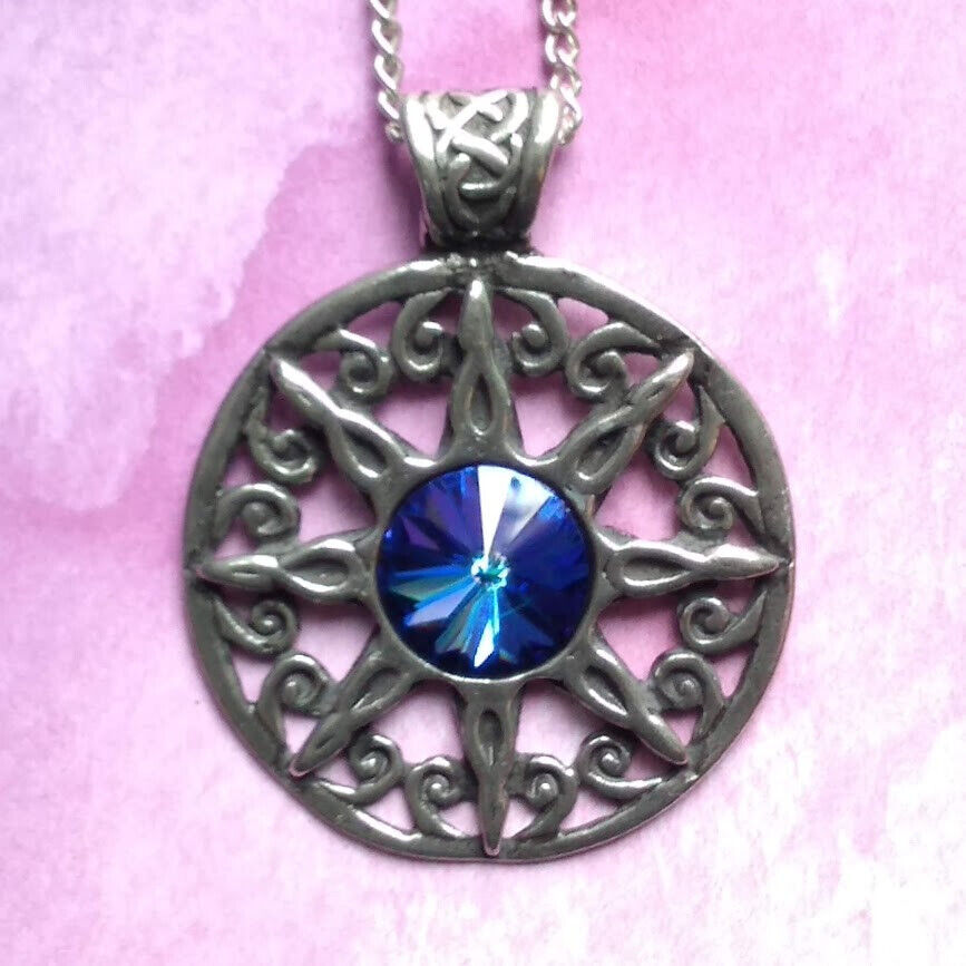Viking Nordic Lights Ring of the Heavens Star Pendant Necklace Pewter Crystal