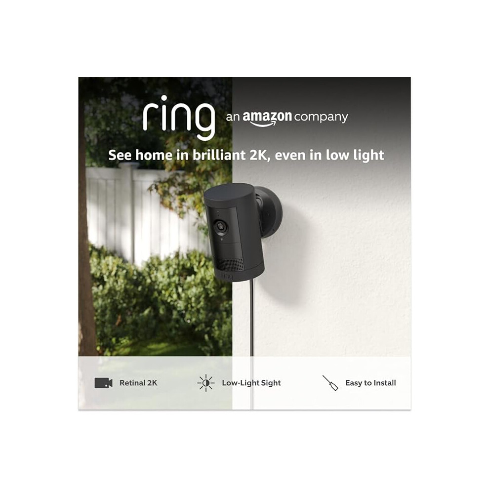Ring Outdoor Camera Pro Plug-In (newest gen) | Security Camera | Retinal 4K, 10X Enhanced Zoom | DIY Install | 30-day free trial of Ring Subscription Plan | 2 Cameras, Black