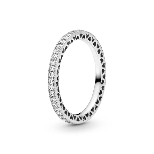 PANDORA Signature Women's Sterling Silver Sparkle and Hearts Cubic Zirconia Ring, Size 56, With Gift Box