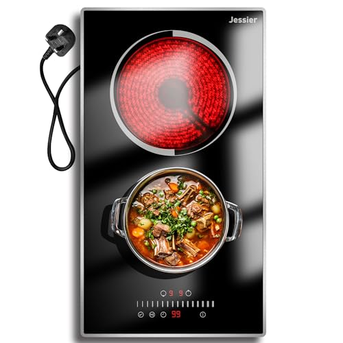 Jessier Electric Ceramic Hob 2 Ring, Portable Plug in Hob 2800W, 30cm Cooktop Built-in & Countertop Stove Top, Slide Control & Touch Control, Safety Lock, 220-240V