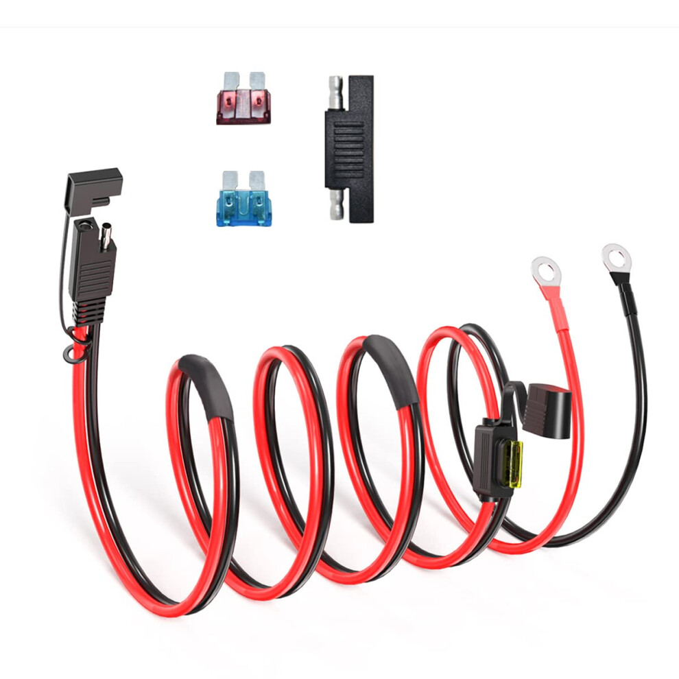 ELFCULB 14AWG 10FT SAE to Ring Terminal Extension Cable with 10A 15A 20A Fuses for Solar Generator, Solar Panel, Battery Charger (3M)