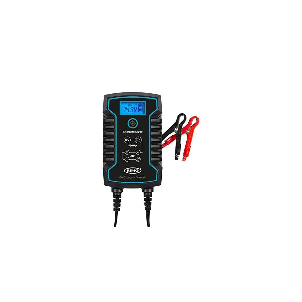 RING ULTRACHARGE 10A Smart Car Charger & Battery Maintainer With Alternator Testing And Power Supply Mode - Compatible With Lithium Ion, Lead Acid, Gel, EFB & AGM Batteries (6V & 12V Compatible)