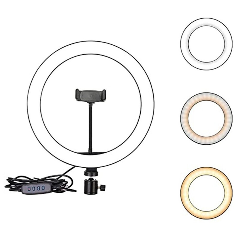 (As show, One size) 16cm LED Dimmable LED Video Ring Light Camera Lamp Kit with Desktop Tripod Mobile Phone Holder USB Port
