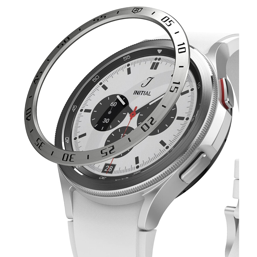 Ringke Bezel Styling Compatible with Samsung Galaxy Watch 4 Classic 46mm Adhesive Frame Ring Cover Anti Scratch [Stainless Steel] Protection for Galaxy Watch4 Classic 46mm - Silver [46-04]