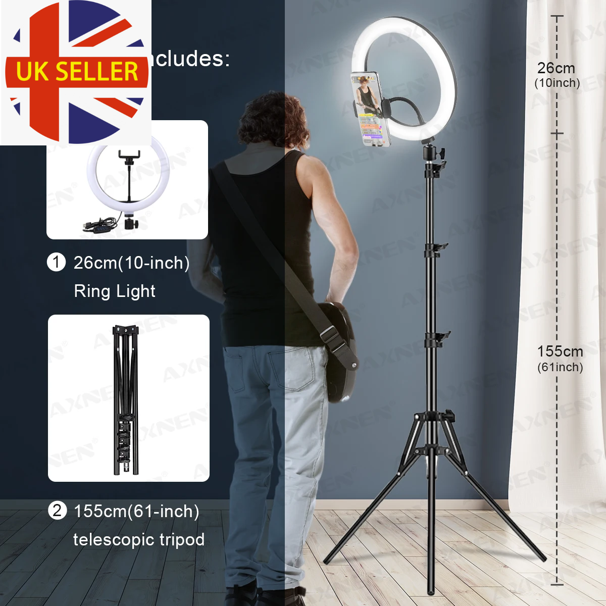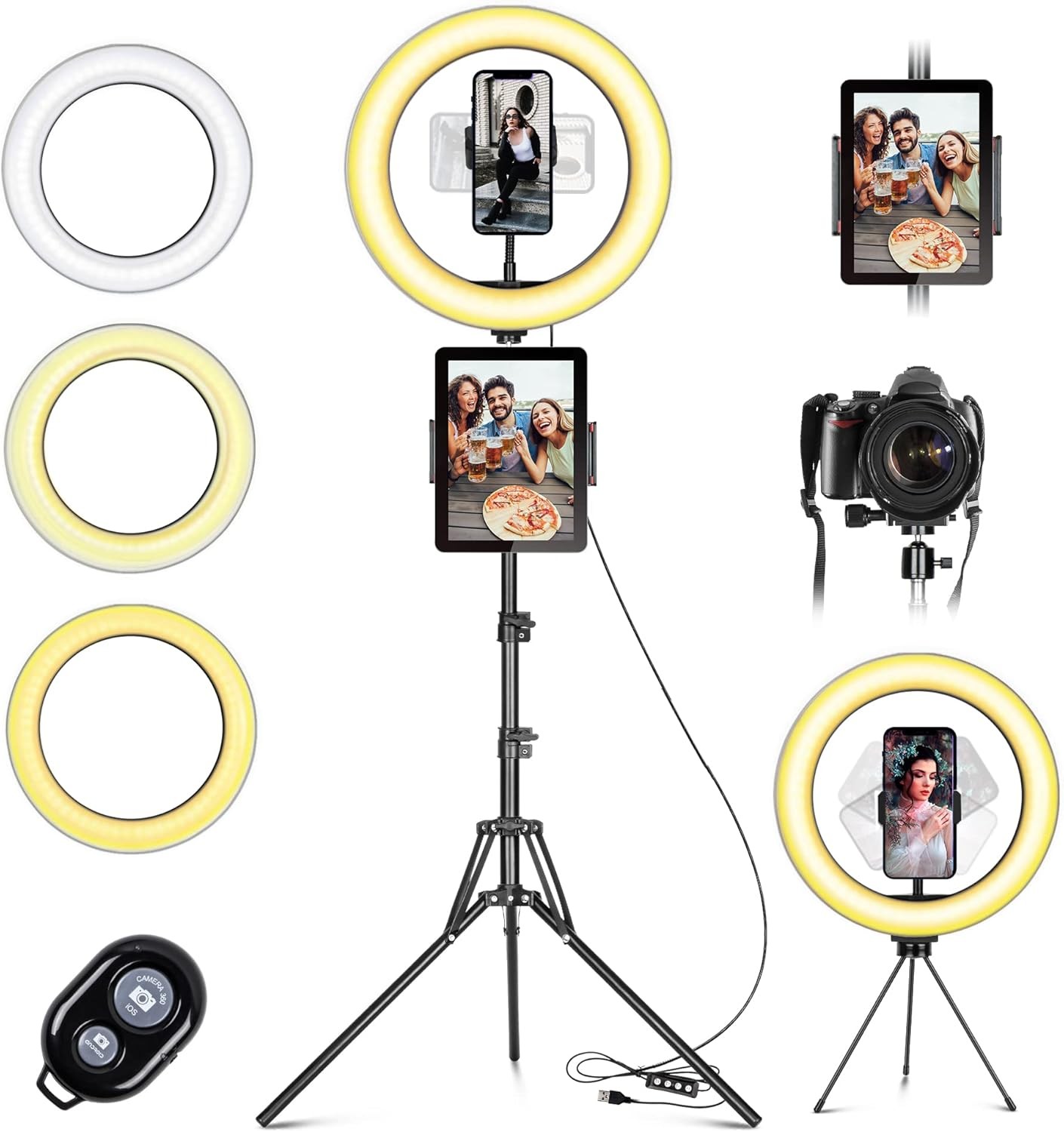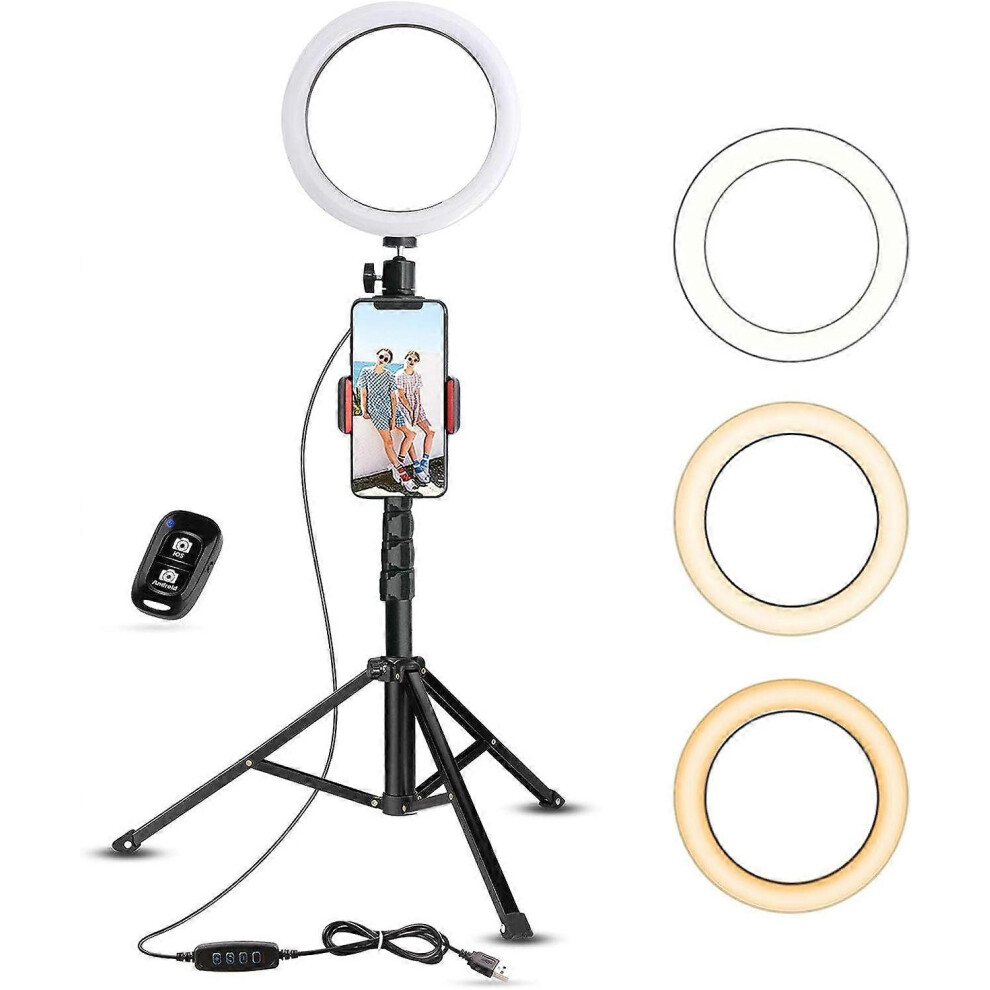 10 inch Ring Light with Tripod Stand & Phone Holder, Selfie Ringlight with Remo