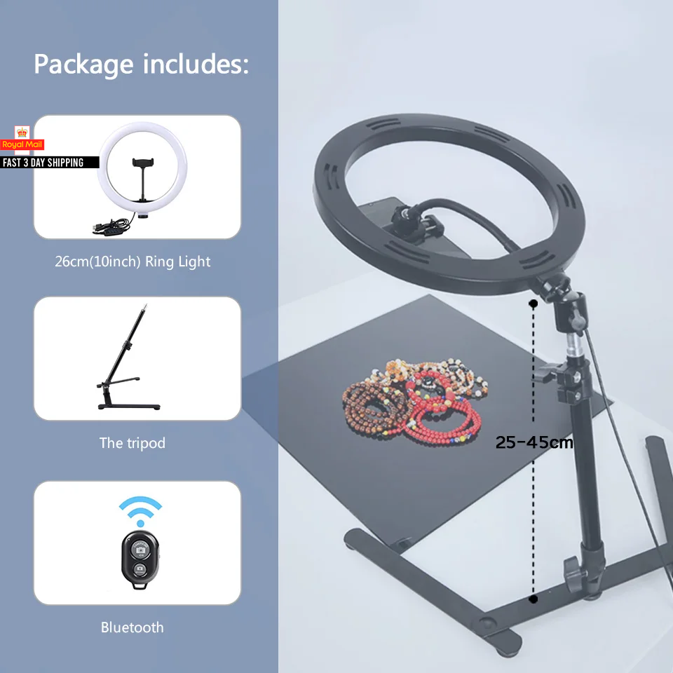 26CM Photography Lighting Phone Ringlight Tripod Stand Photo Led Selfie Remote F