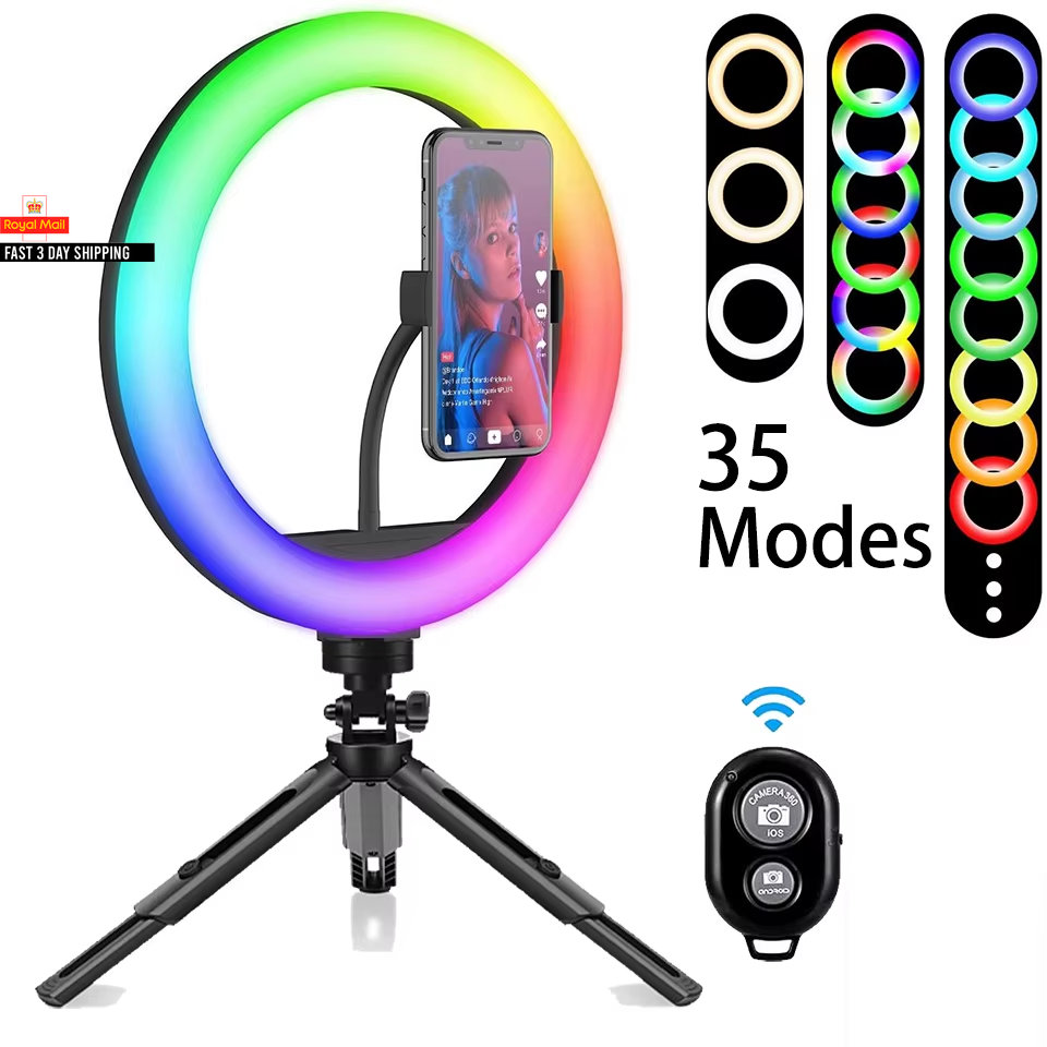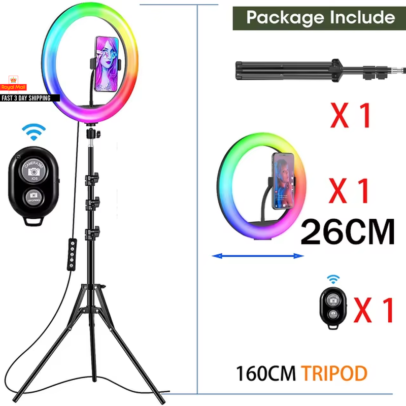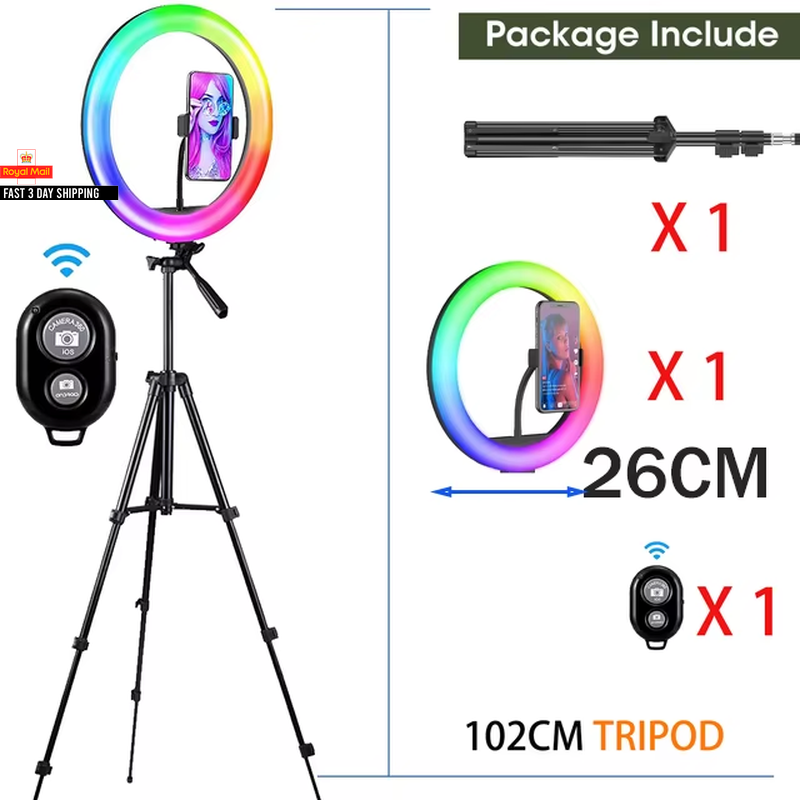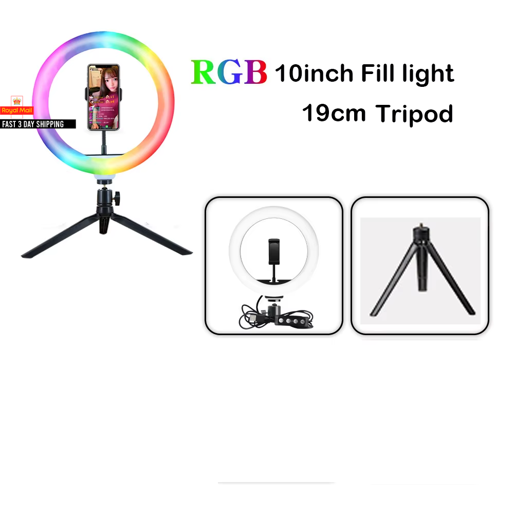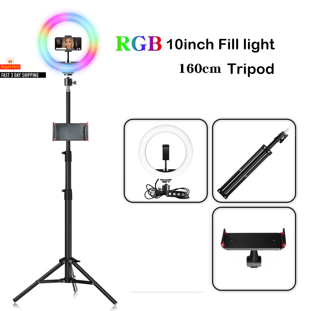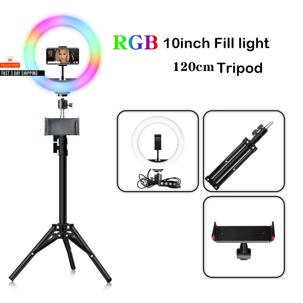 Selfie Ring Light 10" RGB with Tripod Stand Fill LED Ringlight Phone Photography