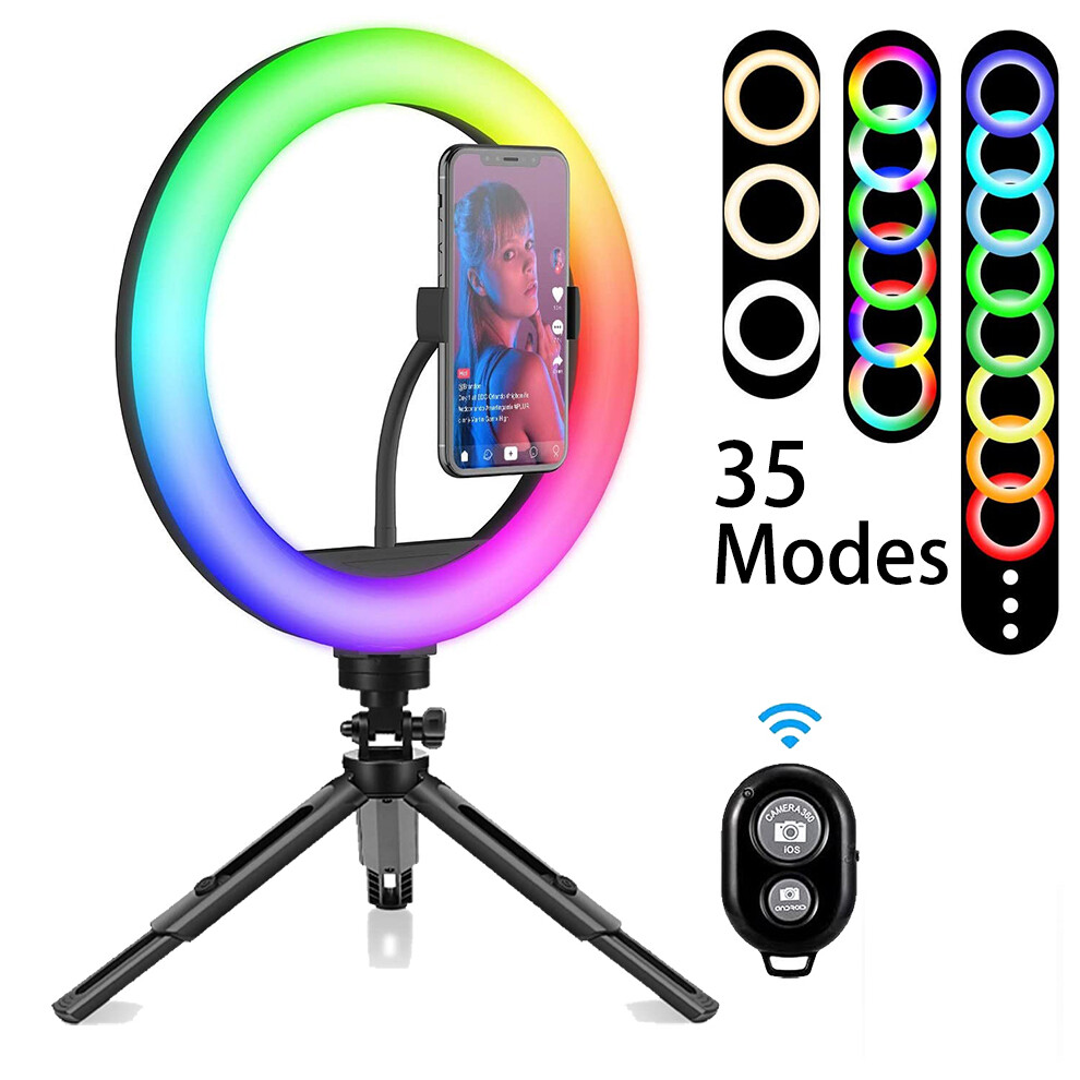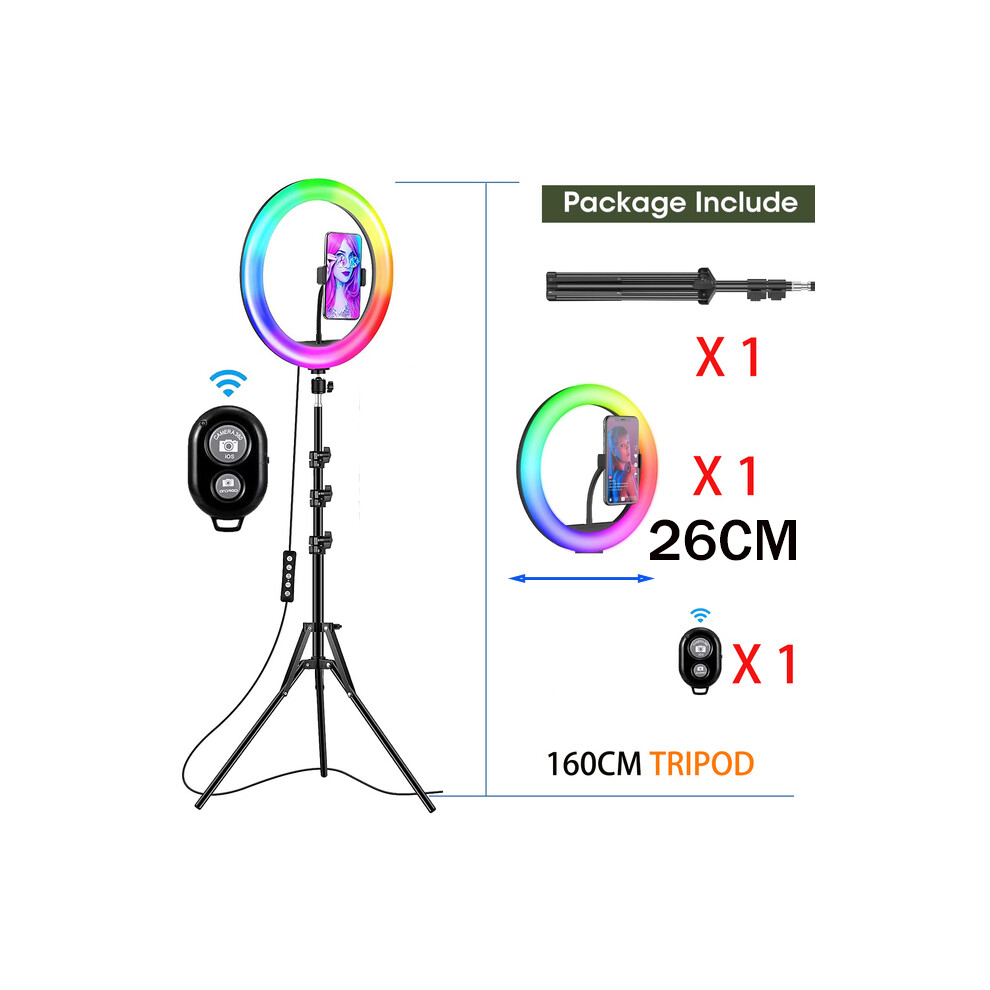(A) Selfie Ring Light 26cm RGB Fill LED RingLight Selfie Lamp Photography Lighting Mobile Holder Tripod Stand For Video Youtube Live