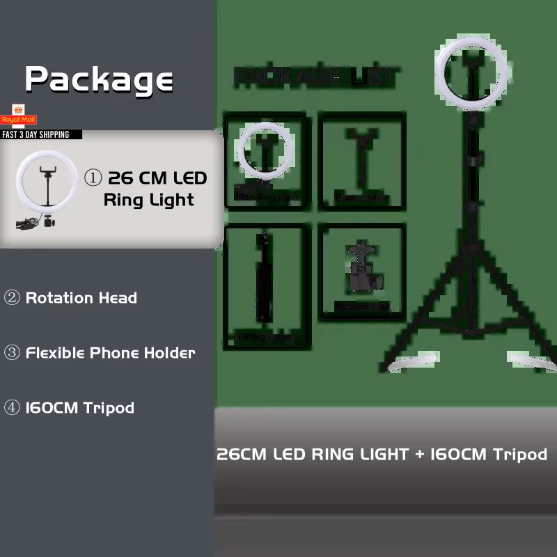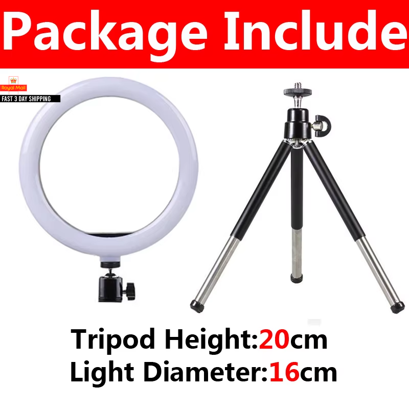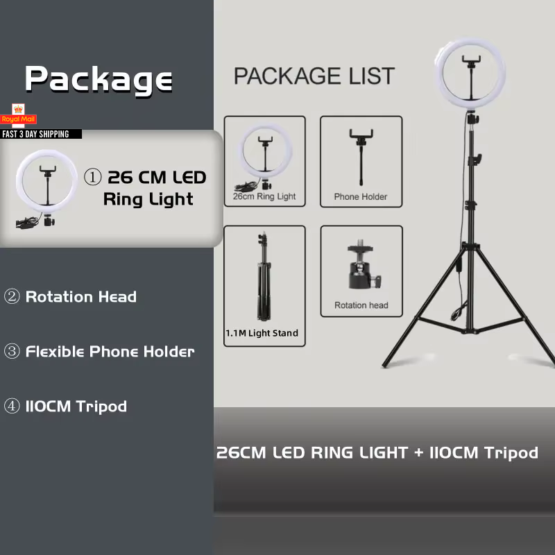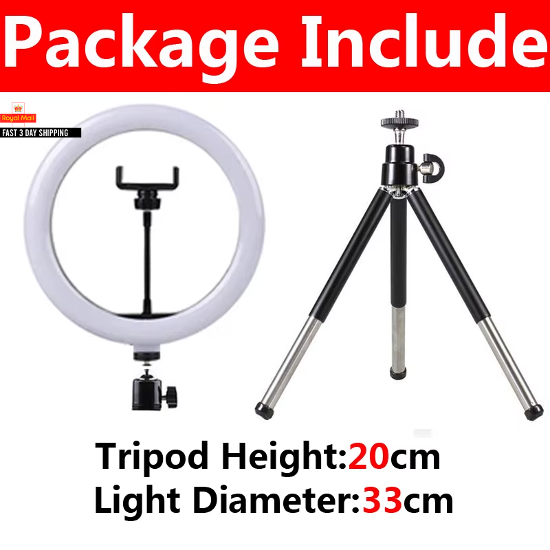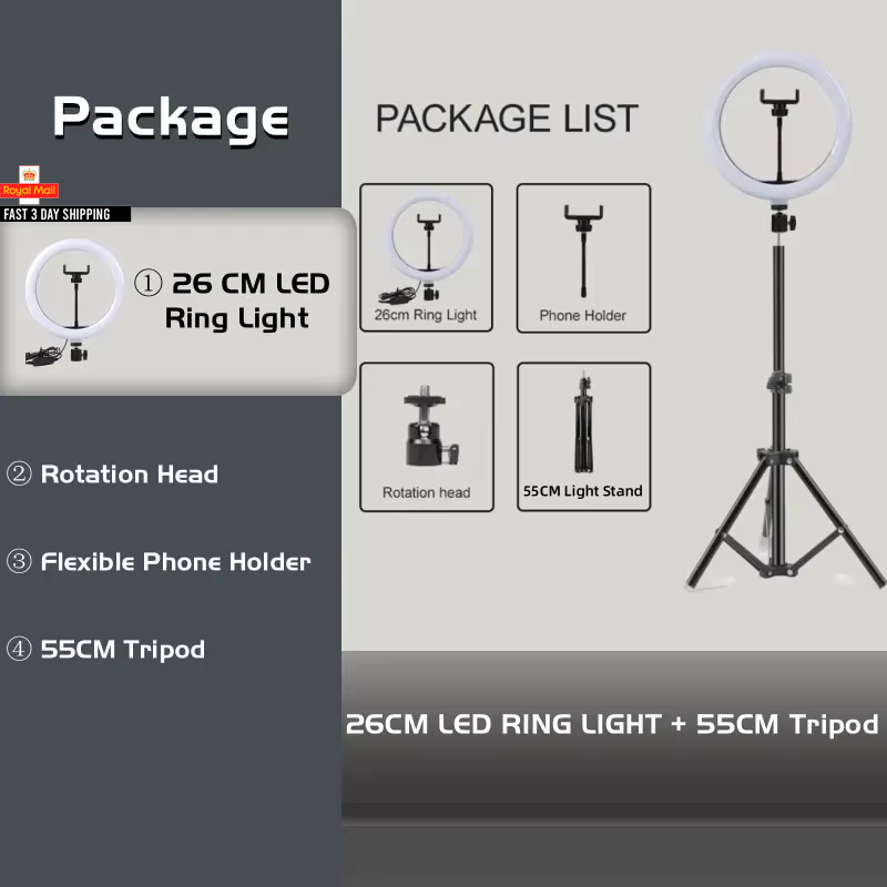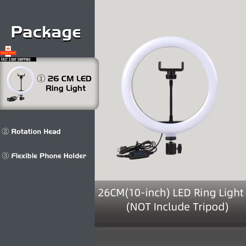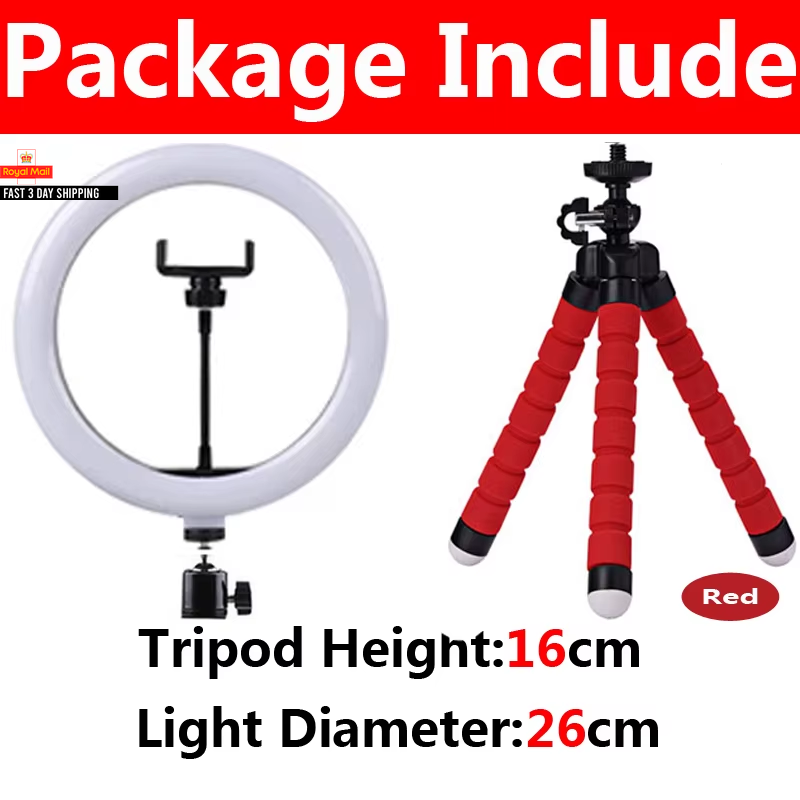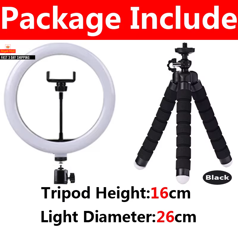 10" 26Cm LED Selfie Ring Light Photography Video Light Ringlight Phone Stand Tri
