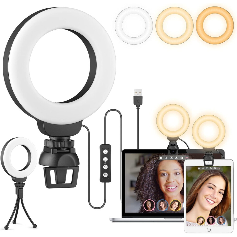 4" Ring Light for Laptop with Stand, Conference Lighting Kit, 3 Light Modes Dimmable LED Ringlight for Meetings