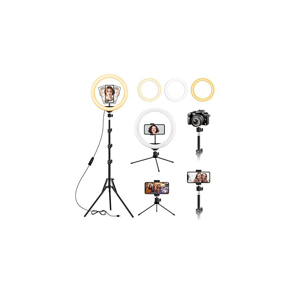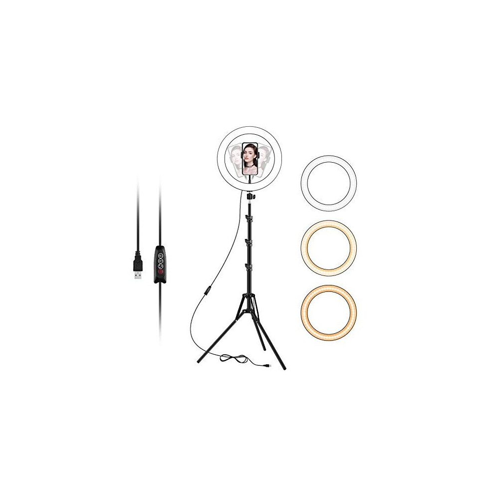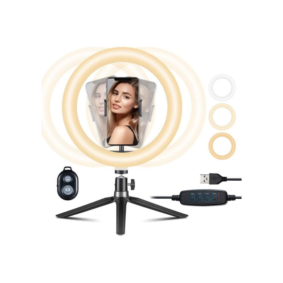10" Ring Light LED Selfie Desk Lamp Dimmable 3 Colors 10 Brightness with Tripod Ringlight Bulbs for YouTub Video