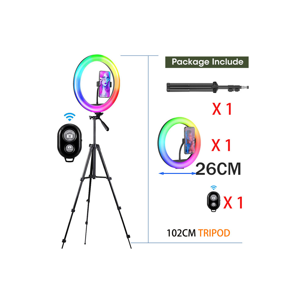 (D) Selfie Ring Light 26cm RGB Fill LED RingLight Selfie Lamp Photography Lighting Mobile Holder Tripod Stand For Video Youtube Live