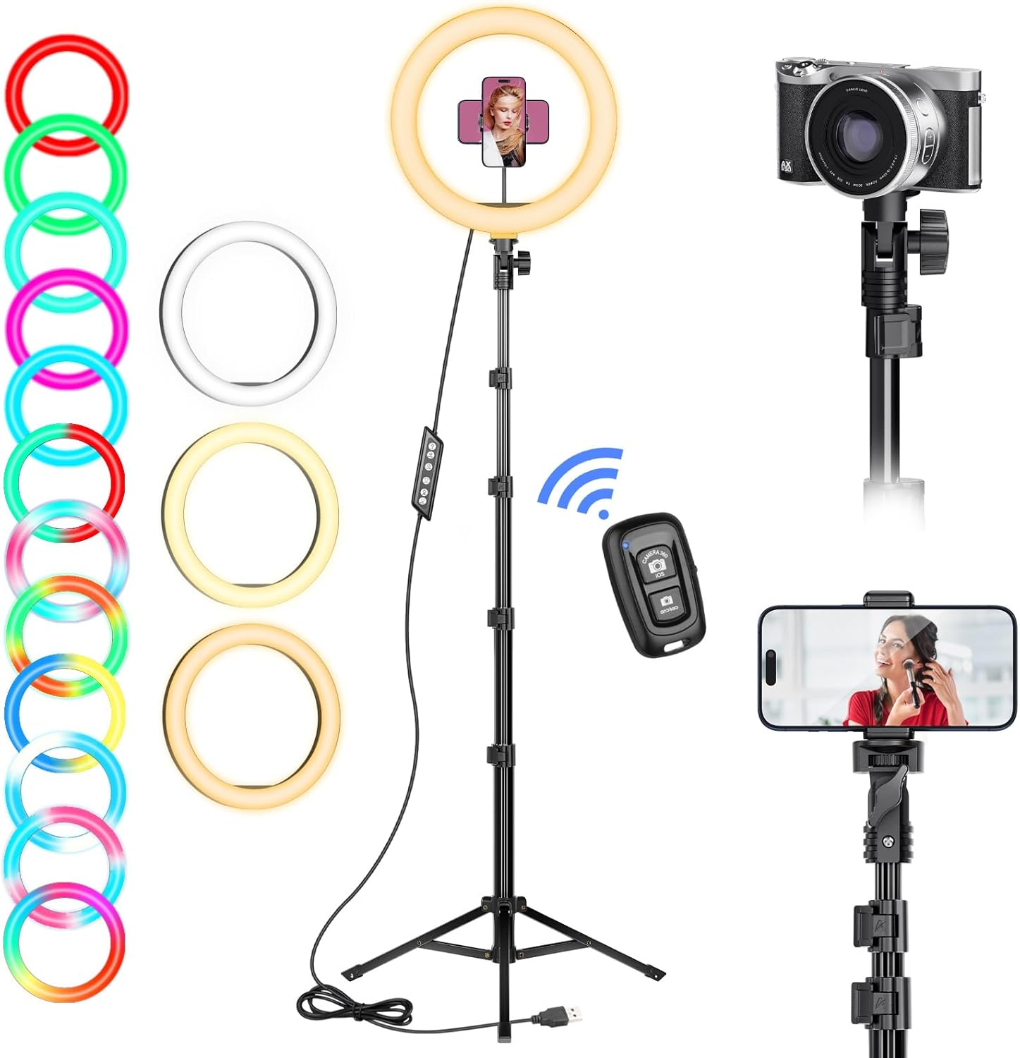 10 inch Ring Light with Tripod Stand and Phone Holder (Ringlight Kit Totally 70" Tall), USB Powered Circle Light for Phone Selfie Photo, Video Recor