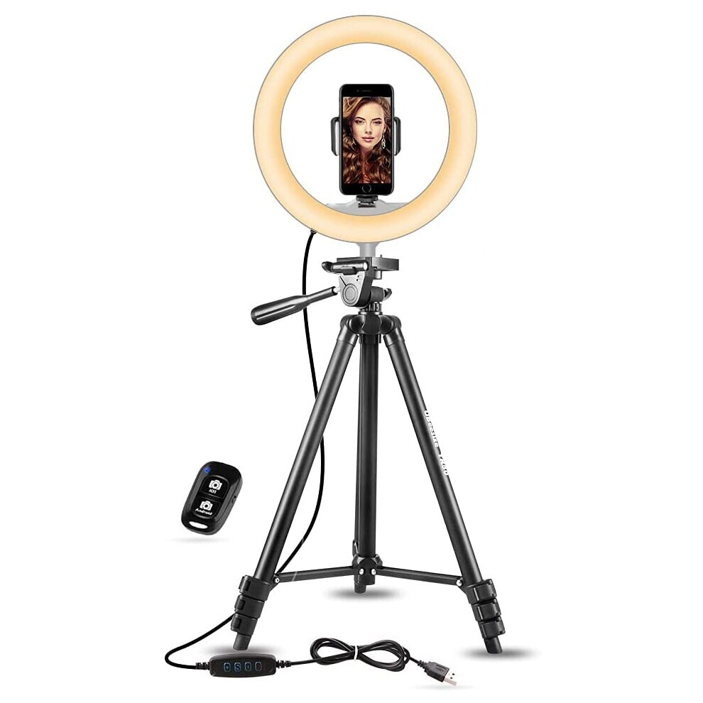 10 Inch Ring Light with Tripod Stand & Phone Holder, Selfie Ringlight with Remot