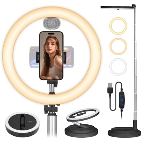 TONOR Overhead Ring Light Kit, 10" Ringlight with Heayy Duty Boom Arm and Phone