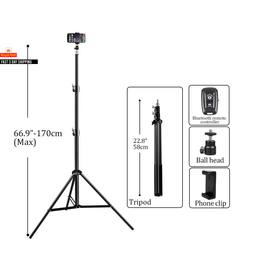 Ring Light with Tripod Stand & Phone Holder Tall 182 Cm, 10 Inch LED Ringlight S