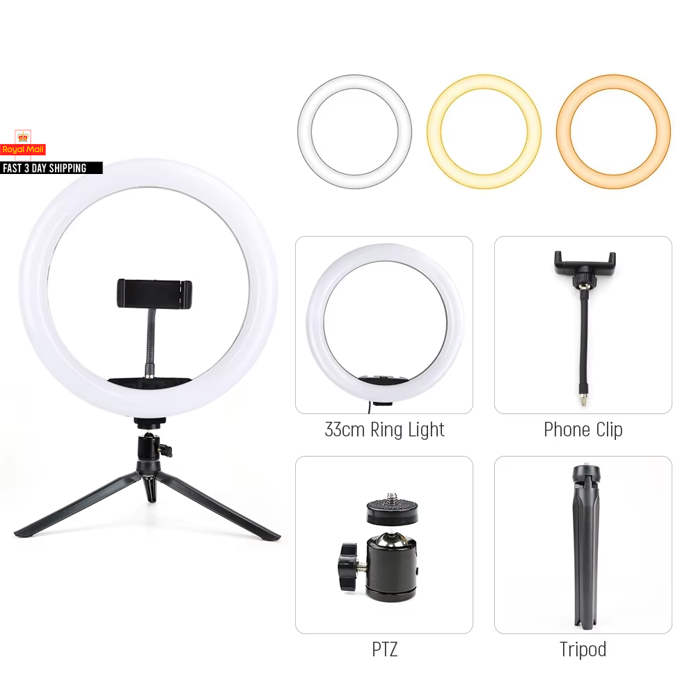 33Cm Selfie Ring Light 12" LED Tripod Phone Stand Holder Photography Ringlight C