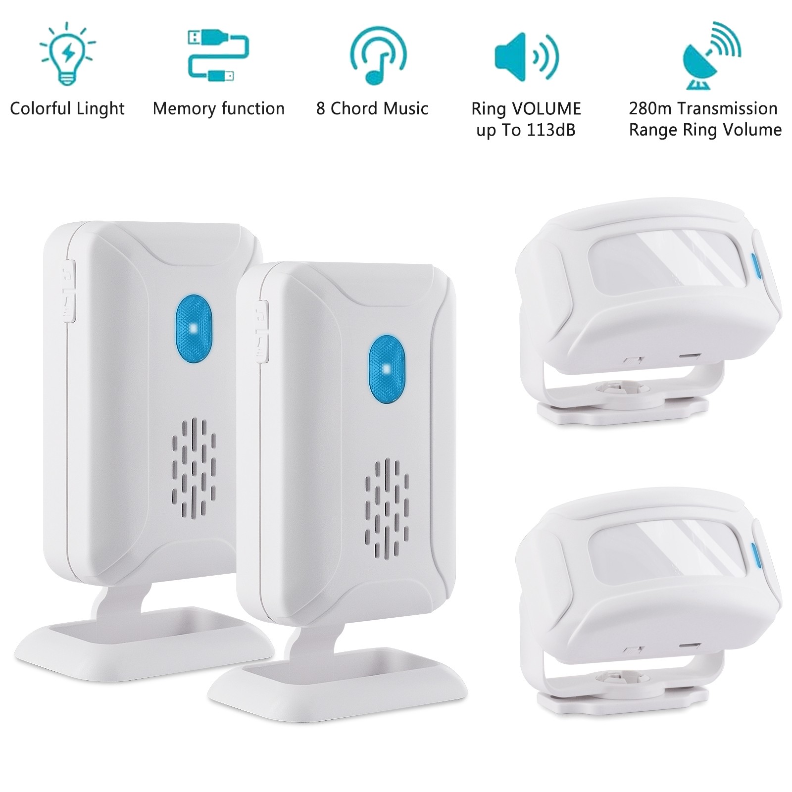 ԾSelf Powered Doorbell Set 2 Transmitter Long Range 38 Ringtones Battery Fre