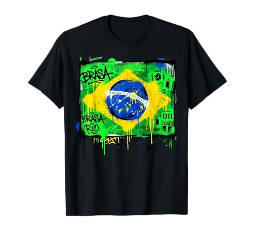 Brazil Flag Graffiti Spray Paint Brasa Rio Streetwear T-Shirt