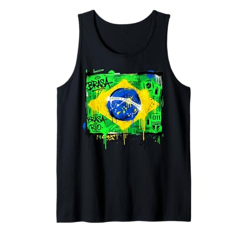 Brazil Flag Graffiti Spray Paint Brasa Rio Streetwear Tank Top