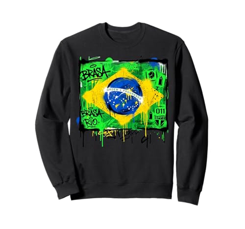 Brazil Flag Graffiti Spray Paint Brasa Rio Streetwear Sweatshirt