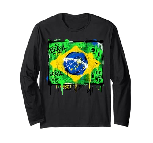 Brazil Flag Graffiti Spray Paint Brasa Rio Streetwear Long Sleeve T-Shirt