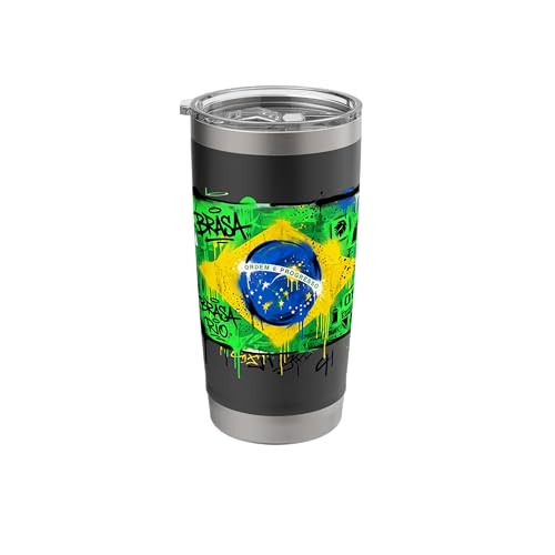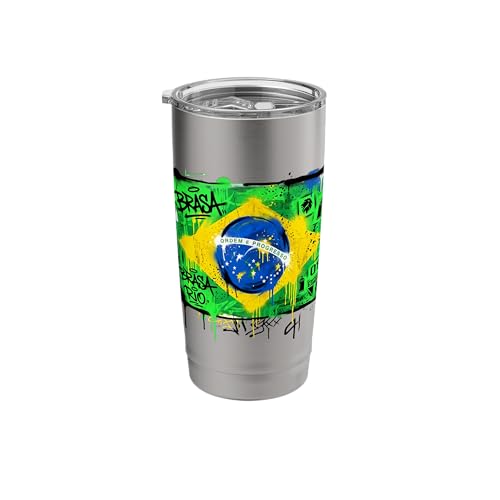 Brazil Flag Graffiti Spray Paint Brasa Rio Streetwear Stainless Steel Insulated Tumbler