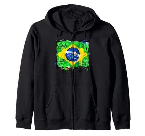 Brazil Flag Graffiti Spray Paint Brasa Rio Streetwear Zip Hoodie