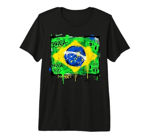 Brazil Flag Graffiti Spray Paint Brasa Rio Streetwear Premium T-Shirt