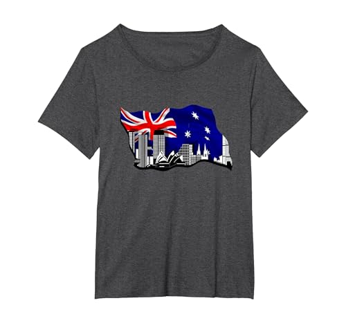 Australia - Melbourne and New South Wales Australia T-Shirt, Women's Plus, Dark Heather Grey, 2X