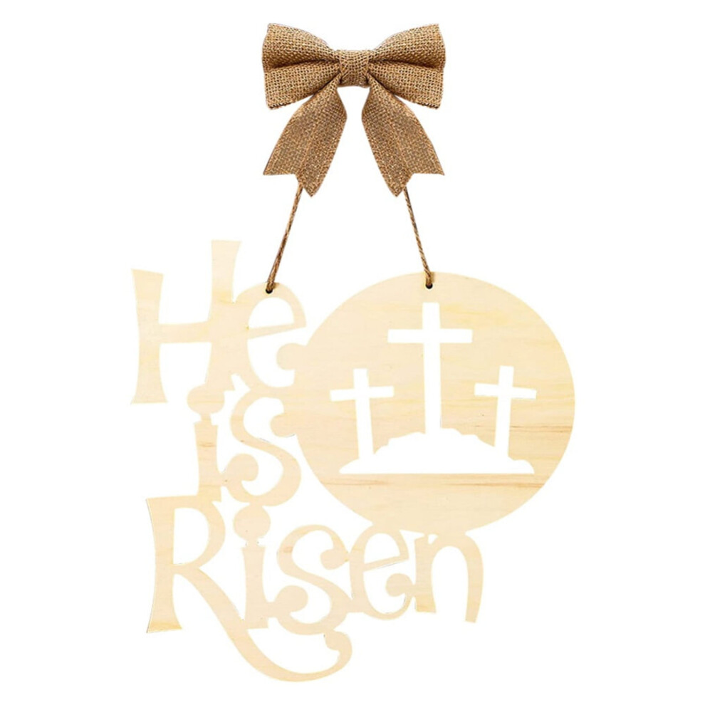 Easter Pendant Home Decor Classic Easter Welcome Hanging Wooden Wall Sign "He Is Risen", 2D Flat Hanging Plaque,Beige