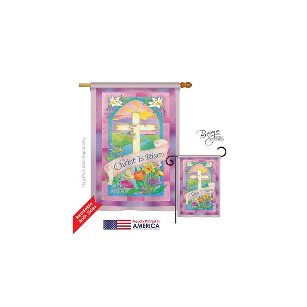 Breeze Decor 03043 Easter Christ is Risen 2-Sided Vertical Impression House Flag - 28 x 40 in.