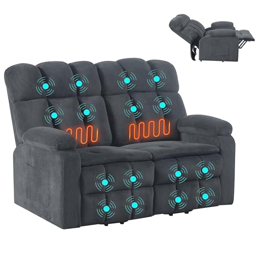 LSLIFE Riser Recliner Chairs for the Elderly Electric Lift Recliner Armchair Sofa Set with Massage & Heat Heavy Duty Oversized Reclining Sofa for Bedroom Living Room (Charcoal Grey 2 Seater)