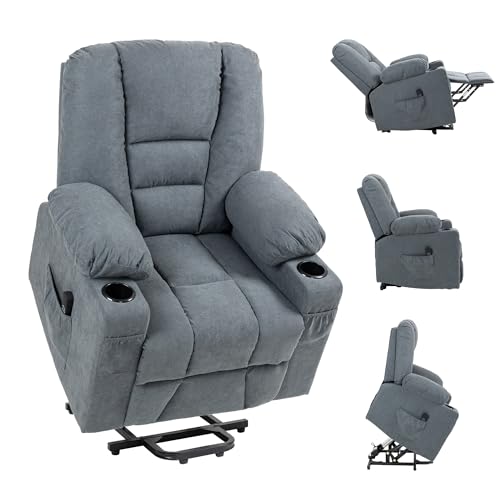 BTM Power Lift Chairs, Riser Recliner Chair with Heat & Massage for Elderly, Electric Lift Chair with Storage Pockets and Cup Holders, Heavy Duty Single Sofa with Single Motor