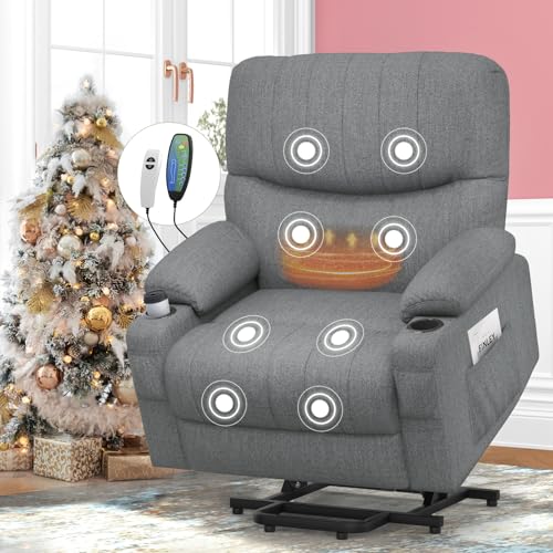 Jtyca Riser and Recliner Chairs, Electric Power Lift Recliner Chair Sofa with Massage and Heat for Elderly, Single Arm Chairs for Living Room Overstuffed Breathable Fabric Recliner (Gray)