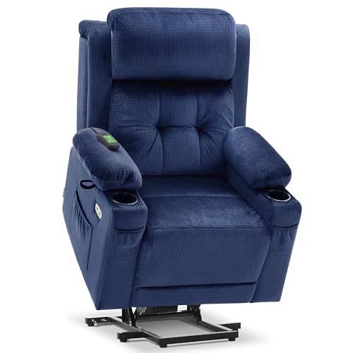 MCombo 3 Motor Riser and Recliner Chairs for Elderly, Large Electric Recliner Armchair, Adjustable Headrest, Infinite Position, Heat & Massage, Extended Footrest, Fabric 7662 (Navy Blue, Large)