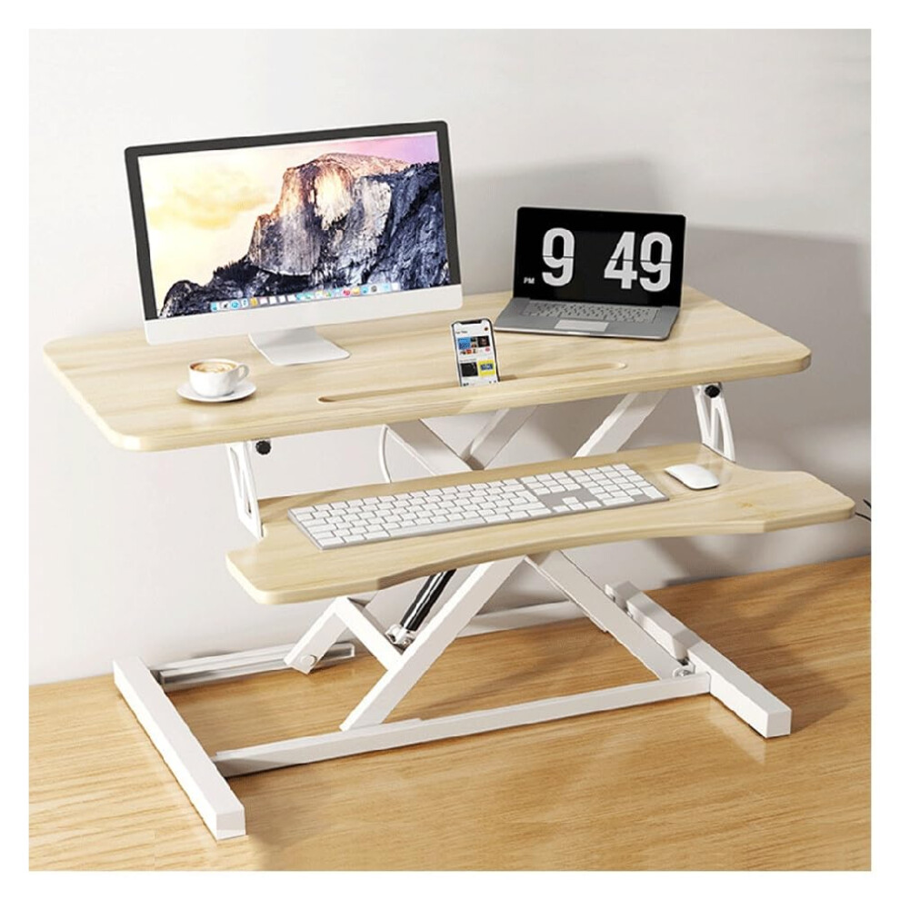 Standing Desk Converter for Home Office, Ergonomic Height Adjustable Desktop Riser for Laptop and Computer, Wood