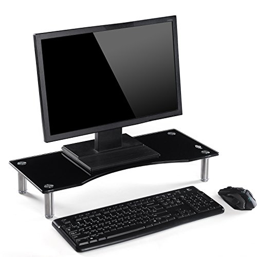 Ttap Black Glass Monitor Riser / Laptop & Computer TV Screen Stand / Height Adjustable 56cm L x 24cm D x 9cm H (Black)