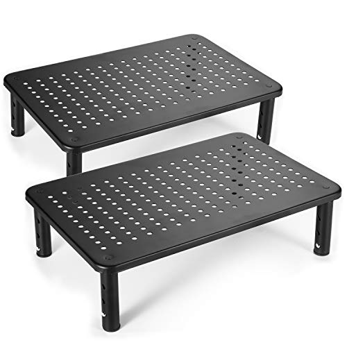 Urban Deco Monitor Stand Riser, Metal Computer Stand Riser with Mesh Platform, 3 Height Adjustable Screen Riser for Laptop, Computer, PC, Notebook black (Black 2PK)