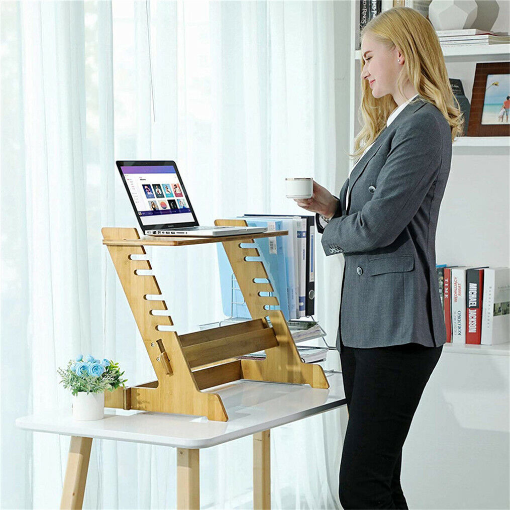Height Adjustable Stand up Desk Converter, Tabletop Standing Desk Riser, for Laptop and Monitor Computer Stand, for Home or Office Use (Color : Wood color, Size : 73 * 47cm)