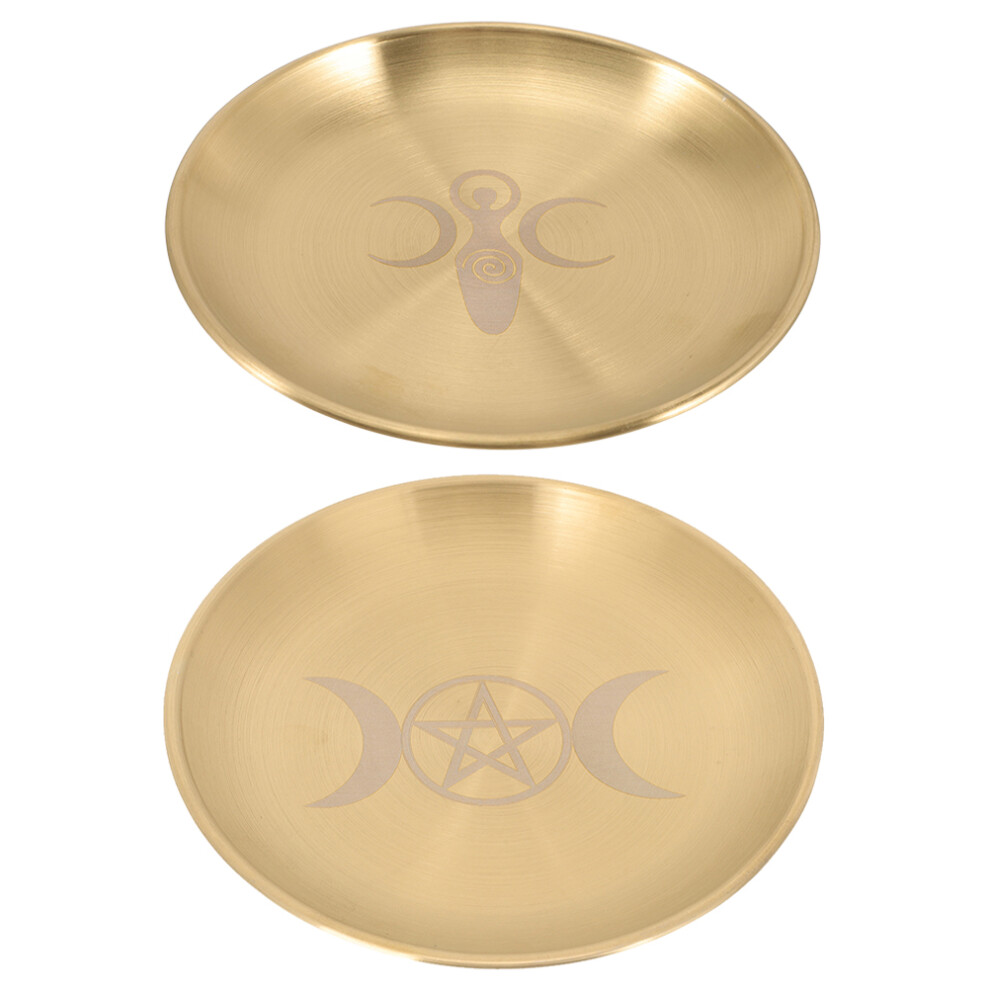 2pcs Ritual Candle Tray Altar Accessories Decorative Brass Plate Three-Phase Moon And For Ceremony And Home Display