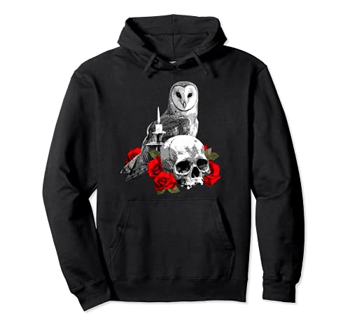 Skull, Roses, Owl and Candle Pullover Hoodie