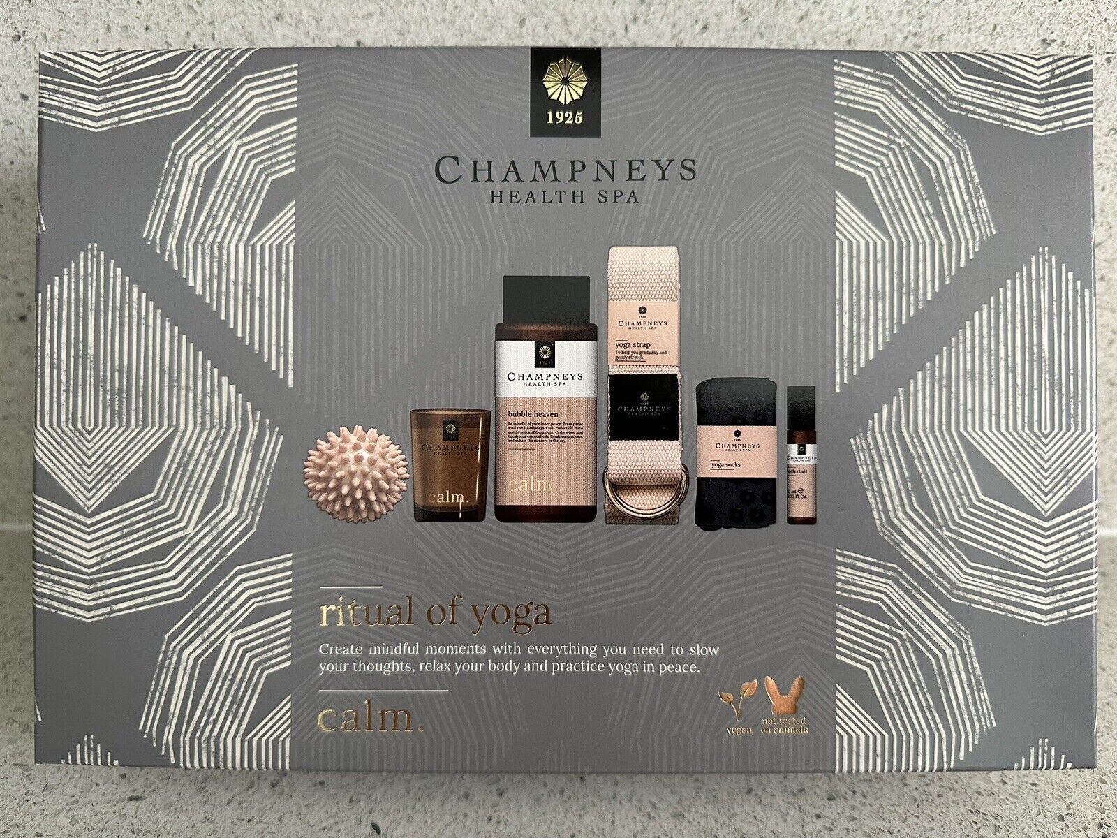CHAMPNEYS RITUAL OF YOGA GIFT SET Strap Socks Massage Ball Bubble Bath Candle